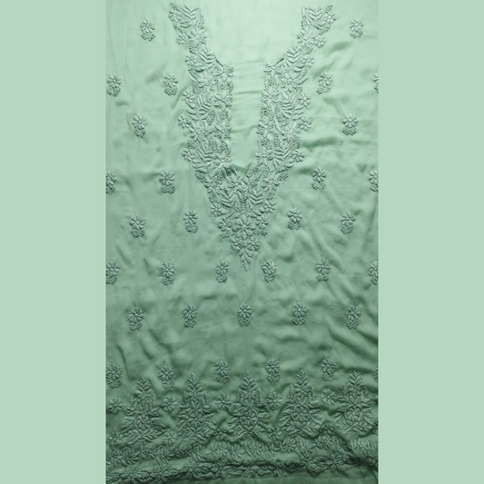 albaas | Shadow Chikankari on Soft Chiffon Shirt's Front and Sleeves with Dupatta Sprayed with Motifs - Unstitched 2PC Suit | AKCSSD-36550-G-SALAD GREEN
