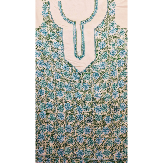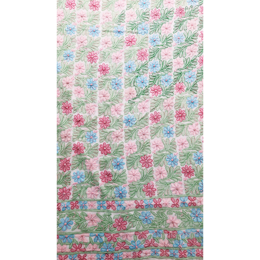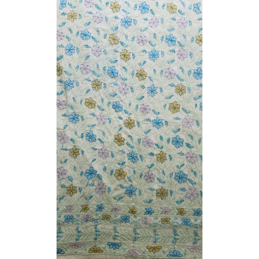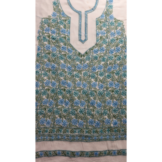 albaas | Shadow Chikankari on Soft Chiffon Shirt's Front and Sleeves with Dupatta Sprayed with Motifs - Unstitched 2PC Suit | AKCSSD-36550-D-BLUE GREEN