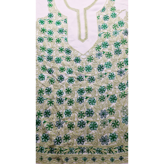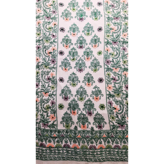 albaas | Shadow Chikankari on Soft Chiffon Shirt's Front and Sleeves with Dupatta Sprayed with Motifs - Unstitched 2PC Suit | AKCSSD-36550-G-GREEN-O-WHITE