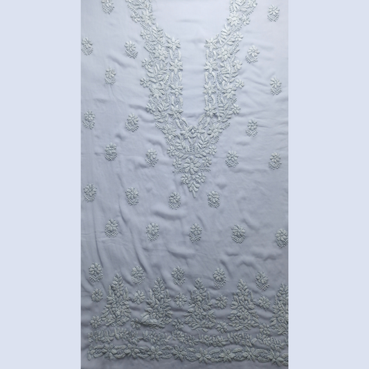albaas | Shadow Chikankari on Soft Chiffon Shirt's Front and Sleeves with Dupatta Sprayed with Motifs - Unstitched 2PC Suit | AKCSSD-36550-E-BLUE-O-WHITE