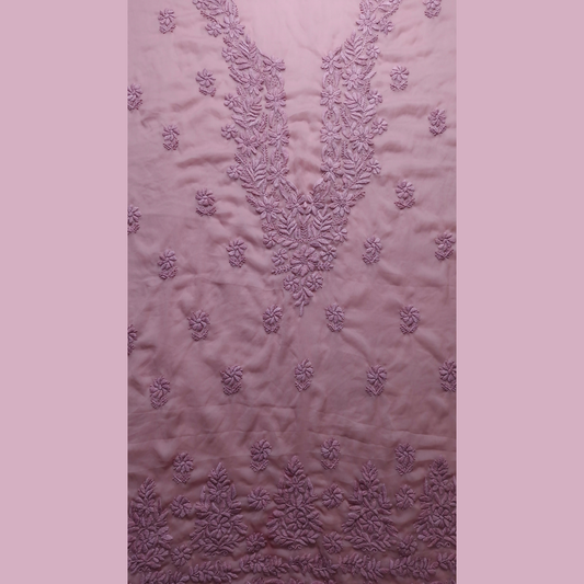 albaas | Shadow Chikankari on Soft Chiffon Shirt's Front and Sleeves with Dupatta Sprayed with Motifs - Unstitched 2PC Suit | AKCSSD-36550-A-PURPLEISH-O-WHITE