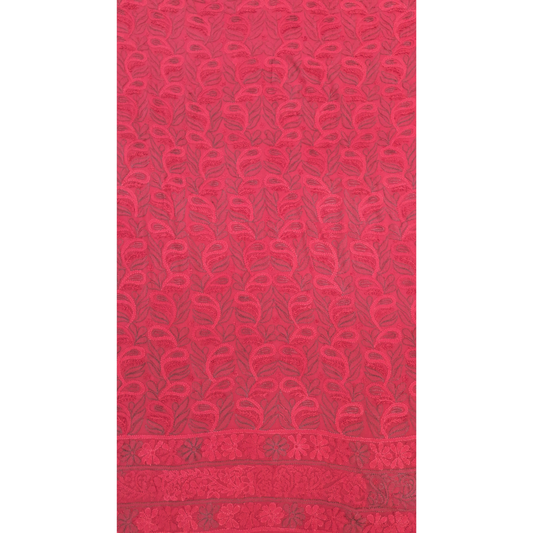 albaas | Shadow Chikankari on Soft Chiffon Shirt's Front and Sleeves with Dupatta Sprayed with Motifs - Unstitched 2PC Suit | AKCSSD-36550-B-RED