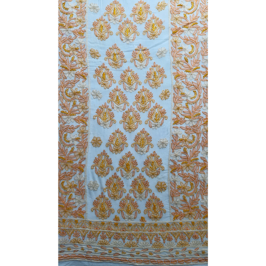 albaas | Shadow Chikankari on Soft Chiffon Shirt's Front and Sleeves with Dupatta Sprayed with Motifs - Unstitched 2PC Suit | AKCSSD-36550-E-ORANGE