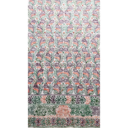 albaas | Shadow Chikankari on Khadi Net Shirt's Front and Sleeves with Dupatta Sprayed with Motifs - Unstitched 2PC Suit | AKNSSD-36550-A-GREEN-O-WHITE