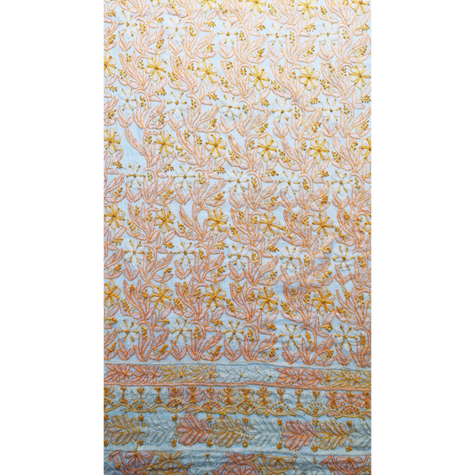 albaas | Shadow Chikankari on Khadi Net Shirt's Front and Sleeves with Dupatta Sprayed with Motifs - Unstitched 2PC Suit | AKNSSD-36550-A-ORANGE-O-WHITE