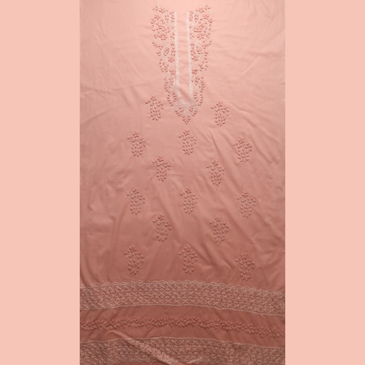 albaas | Tarkashi Applique on Cotton Lawn Shirt's Front and Sleeves with Matching Plain Trousers - Unstitched 2PC Suit | ALTAST-36536-PINKISH PEACH