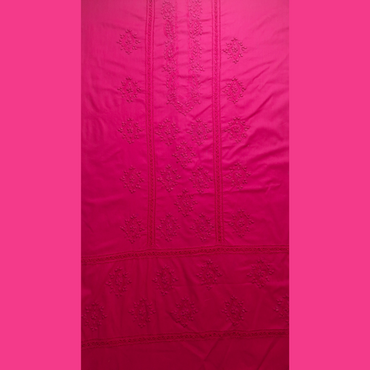 albaas | Tarkashi Applique on Cotton Lawn Shirt's Front and Sleeves with Matching Plain Trousers - Unstitched 2PC Suit | ALTAST-36533-NEON PINK
