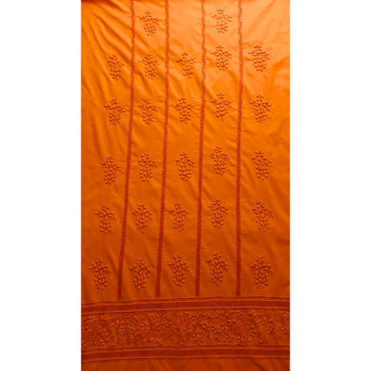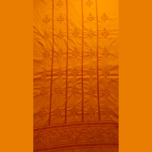 albaas | Tarkashi Applique on Cotton Lawn Shirt's Front and Sleeves with Matching Plain Trousers - Unstitched 2PC Suit | ALTAST-36541-ORANGE