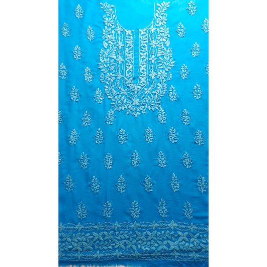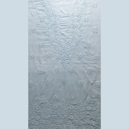albaas | Lucknavi Chikankari on Karandi Lawn Shirt's Front and Sleeves with Dupatta Sprayed with Motifs - Unstitched 2PC Suit | AKLCSD-36701-DEEP SKY BLUE