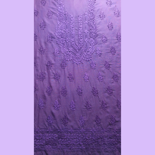 albaas | Lucknavi Chikankari on Karandi Lawn Shirt's Front and Sleeves with Dupatta Sprayed with Motifs - Unstitched 2PC Suit | AKLCSD-36703-PURPLE