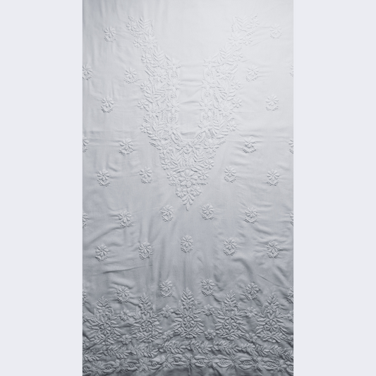albaas | Lucknavi Chikankari on Karandi Lawn Shirt's Front and Sleeves with Dupatta Sprayed with Motifs - Unstitched 2PC Suit | AKLCSD-36703-WHITE