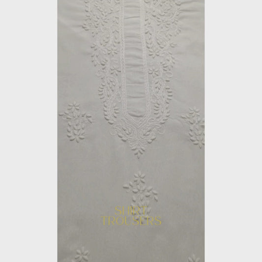 albaas | Tarkashi Applique on Karandi Shirt's Front and Sleeves with Matching Plain Trousers - Unstitched 2PC Suit | AKTAST-36536 -WHITE