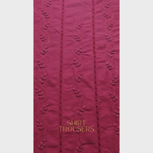 albaas | Tarkashi Applique on Karandi Lawn Shirt's Front and Sleeves with Matching Plain Trousers - Unstitched 2PC Suit | AKTAST-36555-COLD CURRANT