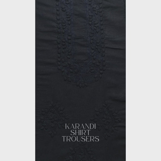 albaas | Tarkashi Applique on Karandi Shirt's Front and Sleeves with Matching Plain Trousers - Unstitched 2PC Suit | AKTAST-36537 -BLACK