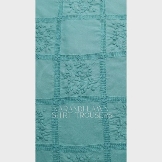 albaas | Tarkashi Applique on Karandi Shirt's Front and Sleeves with Matching Plain Trousers - Unstitched 2PC Suit | AKTAST-36557-LIGHT TURQUOISE