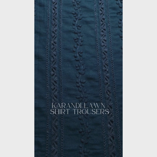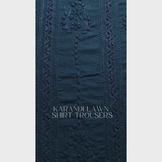 albaas | Lucknavi Chikankari on Karandi Lawn Shirt's Front and Sleeves with Dupatta Sprayed with Motifs - Unstitched 2PC Suit | AKLCSD-36701-NAVY BLUE