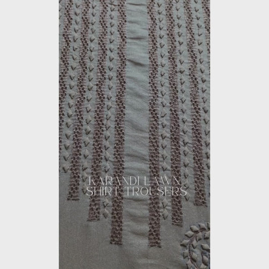 albaas | Tarkashi Applique on Karandi Shirt's Front and Sleeves with Matching Plain Trousers - Unstitched 2PC Suit | AKTAST-36552-SHIRAZ