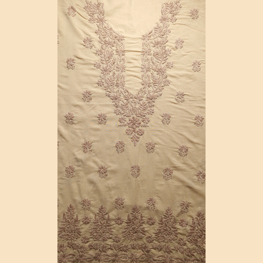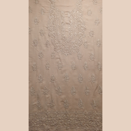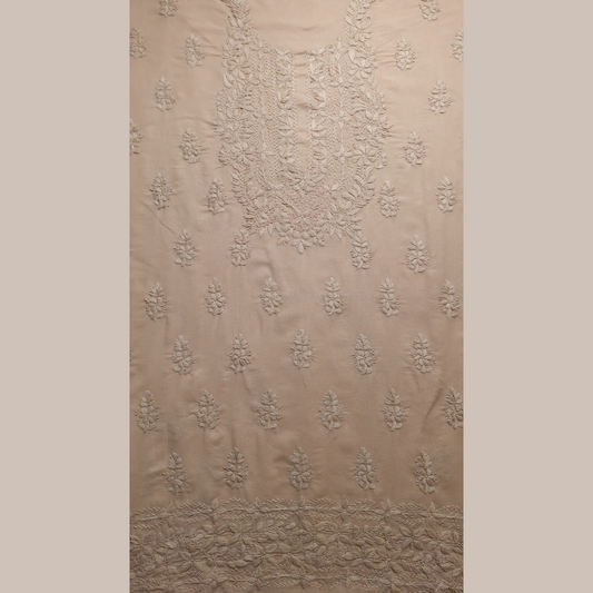 albaas | Lucknavi Chikankari on Karandi Lawn Shirt's Front and Sleeves with Dupatta Sprayed with Motifs - Unstitched 2PC Suit | AKLCSD-36701-BEIGE
