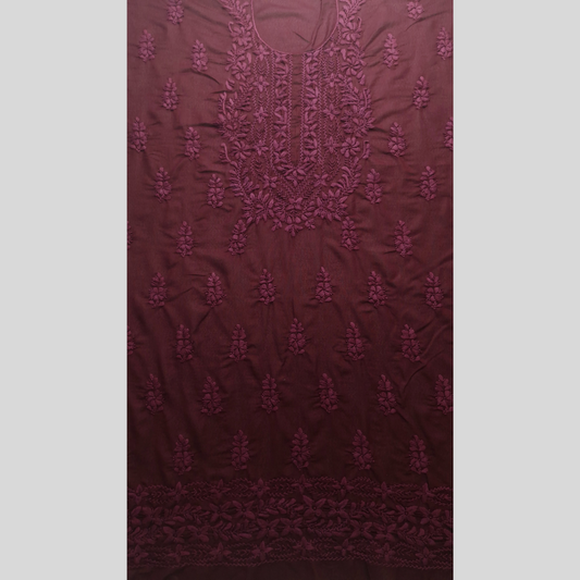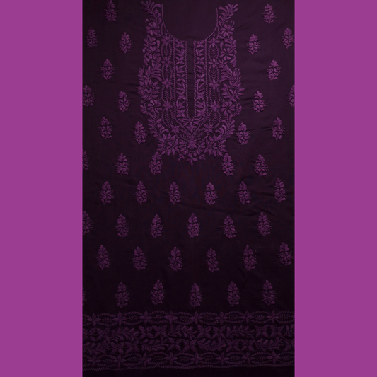 albaas | Lucknavi Chikankari on Karandi Lawn Shirt's Front and Sleeves with Dupatta Sprayed with Motifs - Unstitched 2PC Suit | AKLCSD-36701-PLUM