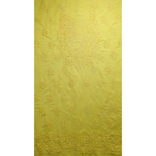 albaas | Lucknavi Chikankari on Karandi Lawn Shirt's Front and Sleeves with Dupatta Sprayed with Motifs - Unstitched 2PC Suit | AKLCSD-36701-LEMON YELLOW