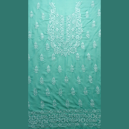 albaas | Lucknavi Chikankari on Karandi Lawn Shirt's Front and Sleeves with Dupatta Sprayed with Motifs - Unstitched 2PC Suit | AKLCSD-36701-SEA GREEN