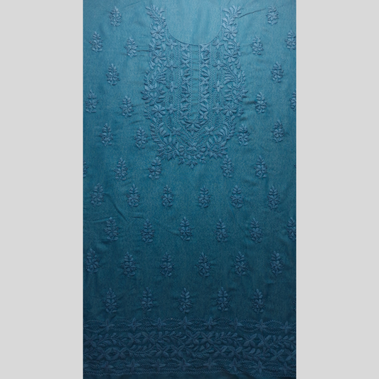 albaas | Lucknavi Chikankari on Karandi Lawn Shirt's Front and Sleeves with Dupatta Sprayed with Motifs - Unstitched 2PC Suit | AKLCSD-36701-TEAL BLUE