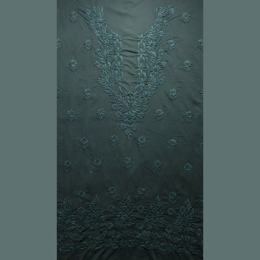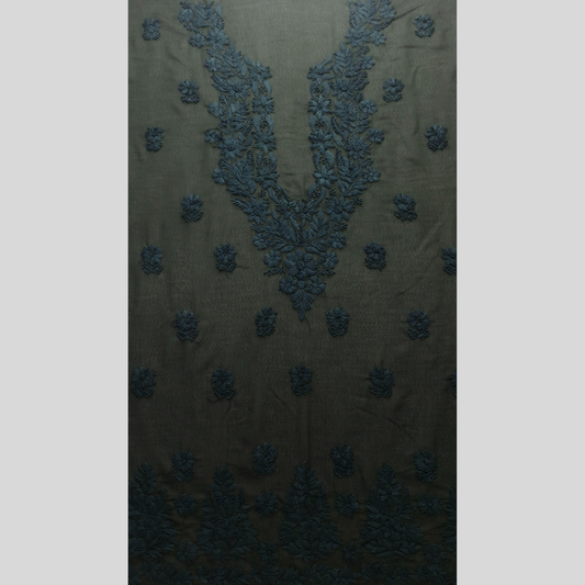 albaas | Lucknavi Chikankari on Karandi Lawn Shirt's Front and Sleeves with Dupatta Sprayed with Motifs - Unstitched 2PC Suit | AKLCSD-36703-BLACKISH GREEN