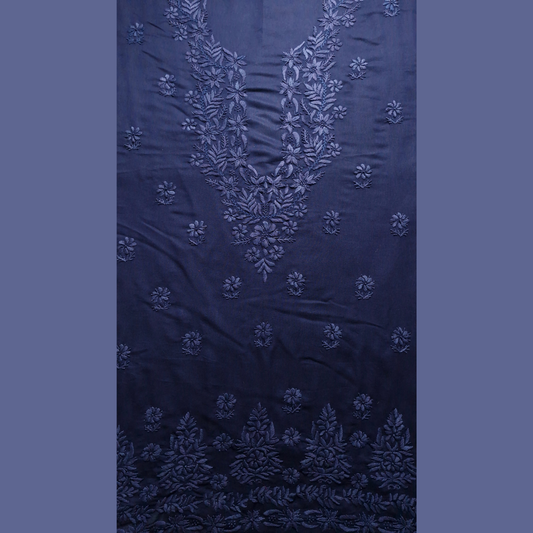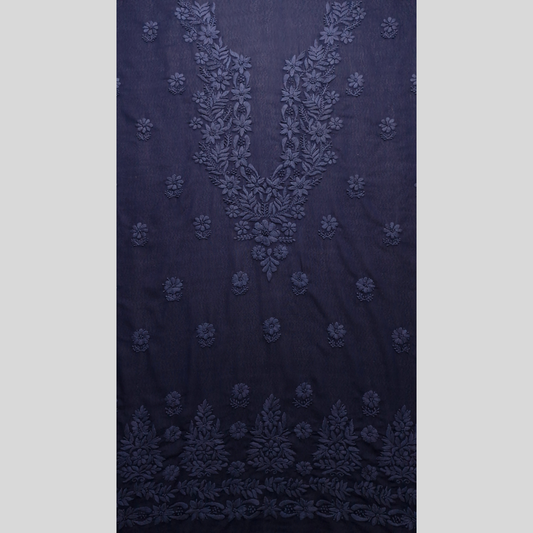albaas | Lucknavi Chikankari on Karandi Lawn Shirt's Front and Sleeves with Dupatta Sprayed with Motifs - Unstitched 2PC Suit | AKLCSD-36703-NAVY BLUE