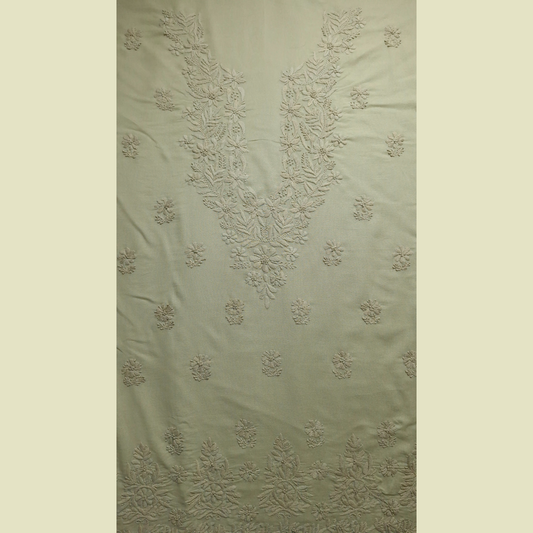 albaas | Lucknavi Chikankari on Karandi Lawn Shirt's Front and Sleeves with Dupatta Sprayed with Motifs - Unstitched 2PC Suit | AKLCSD-36703-TEA GREEN
