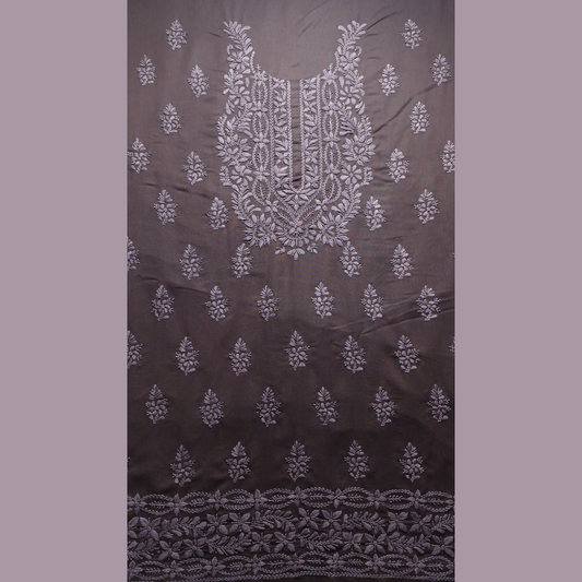 albaas | Lucknavi Chikankari on Karandi Lawn Shirt's Front and Sleeves with Dupatta Sprayed with Motifs - Unstitched 2PC Suit | AKLCSD-36703-BROWNISH GRAY