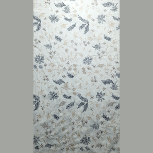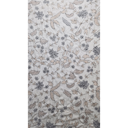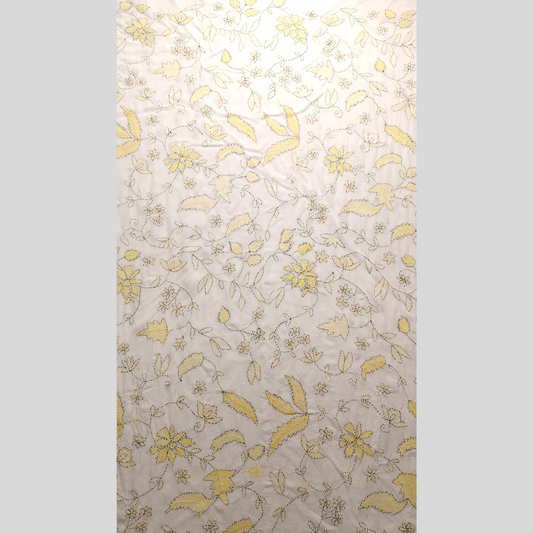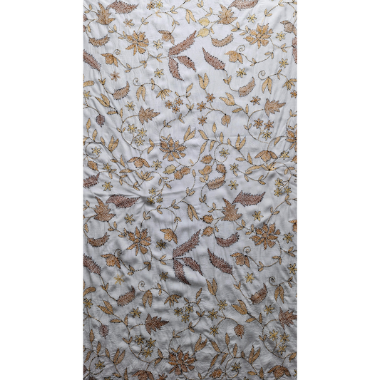 albaas | Kantha Work on Grip Silk Shirt's Front and Sleeves with Plain Trousers-Unstitched 2PC Suit | AGSKWST-36702-G-WHITE