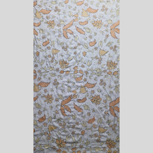 albaas | Kantha Work on Grip Silk Shirt's Front and Sleeves with Plain Trousers-Unstitched 2PC Suit | AGSKWST-36702-H-WHITE-B