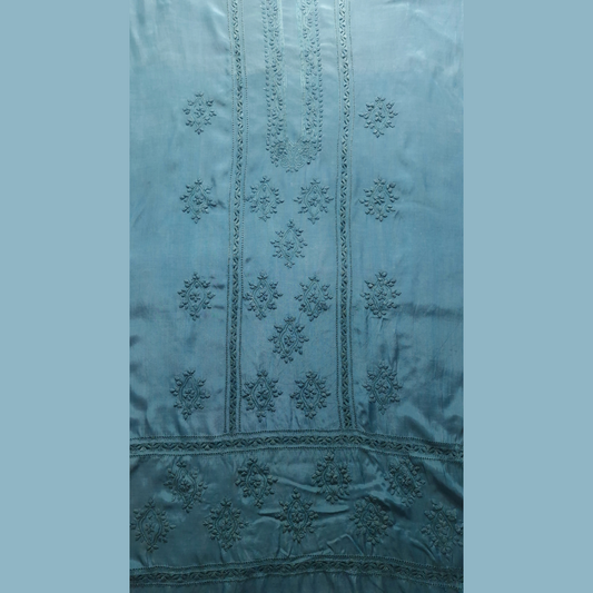albaas | Tarkashi Applique on Raw Silk Shirt's Front and Sleeves with Matching Plain Trousers - Unstitched 2PC Suit | ARSTAST-36553-ELECTRIC BLUE
