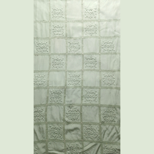 albaas | Kantha Work on Grip Silk Shirt's Front and Sleeves with Plain Trousers-Unstitched 2PC Suit | AGSKWST-36702-G-WHITE-B