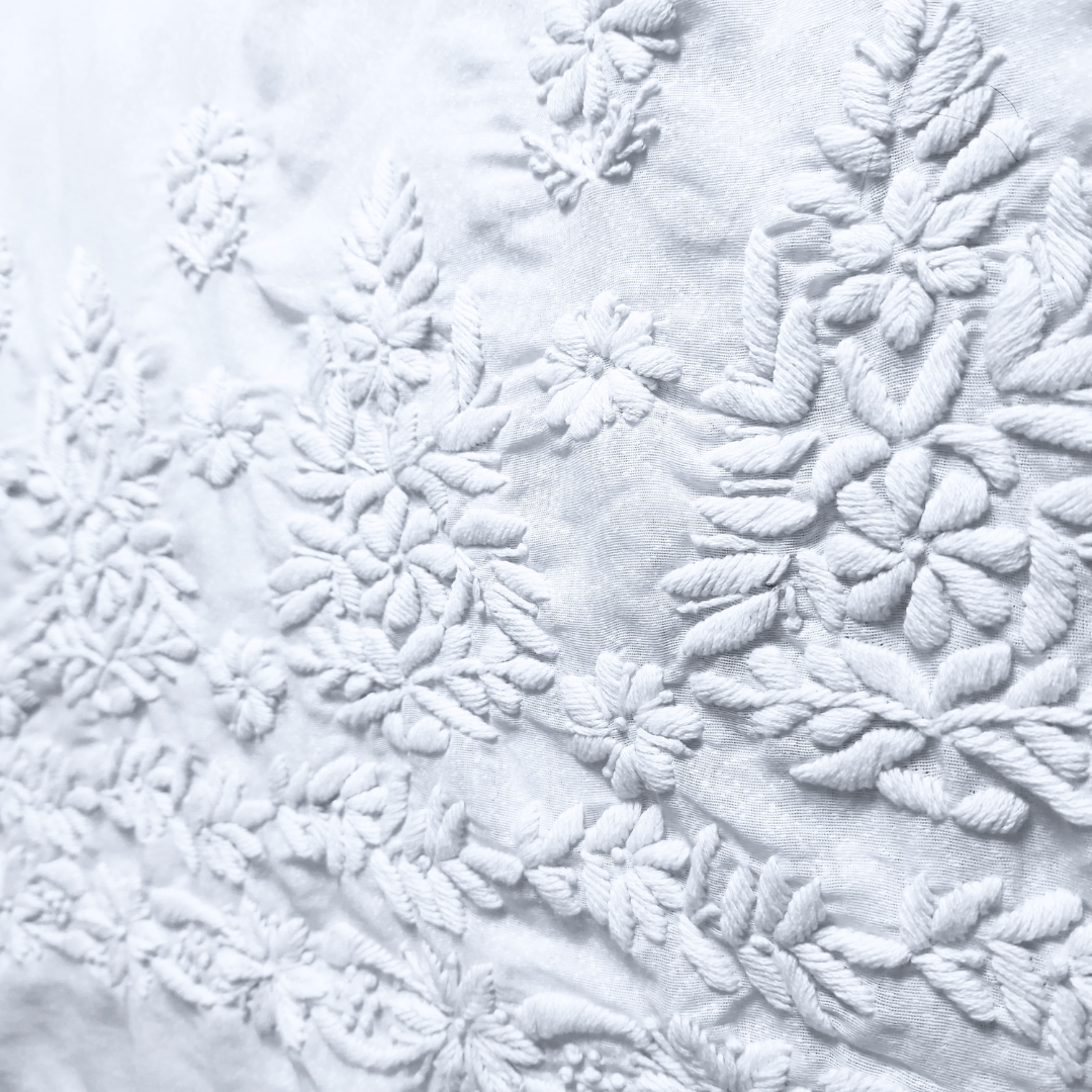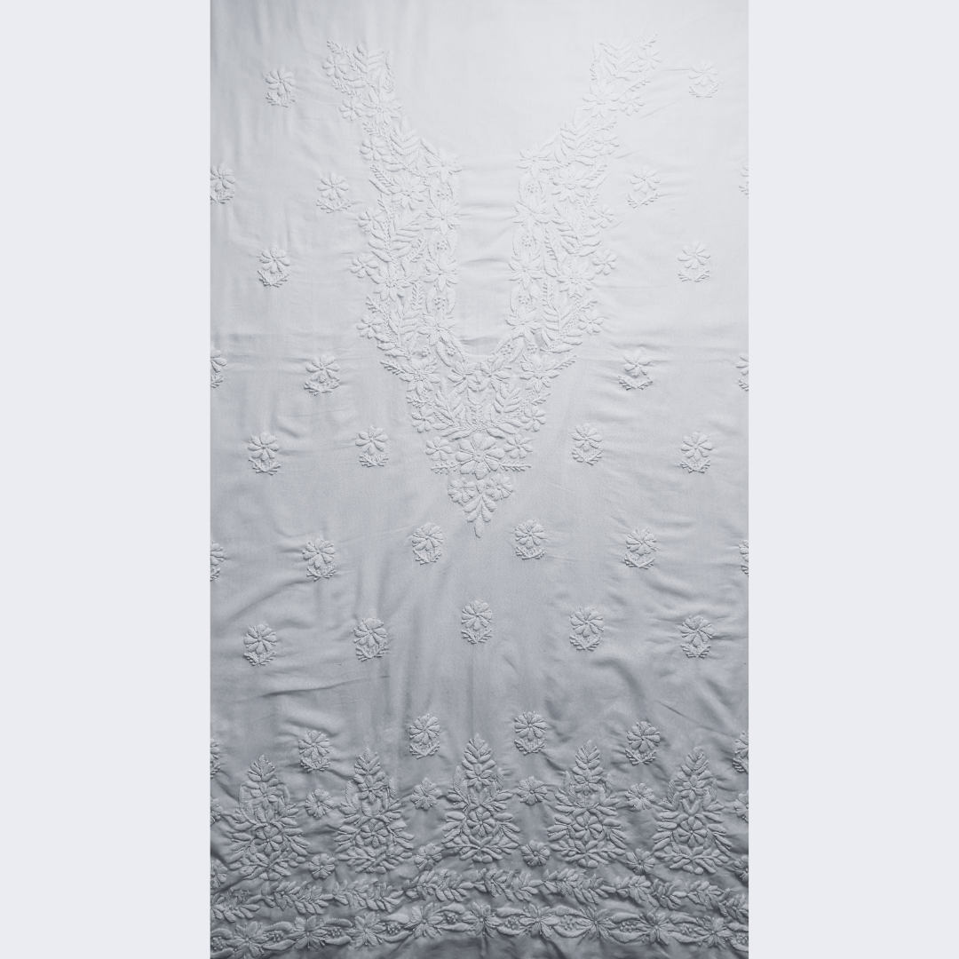 albaas | Lucknavi Chikankari on Karandi Lawn Shirt's Front and Sleeves with Dupatta Sprayed with Motifs - Unstitched 2PC Suit | AKLCSD-36703-WHITE