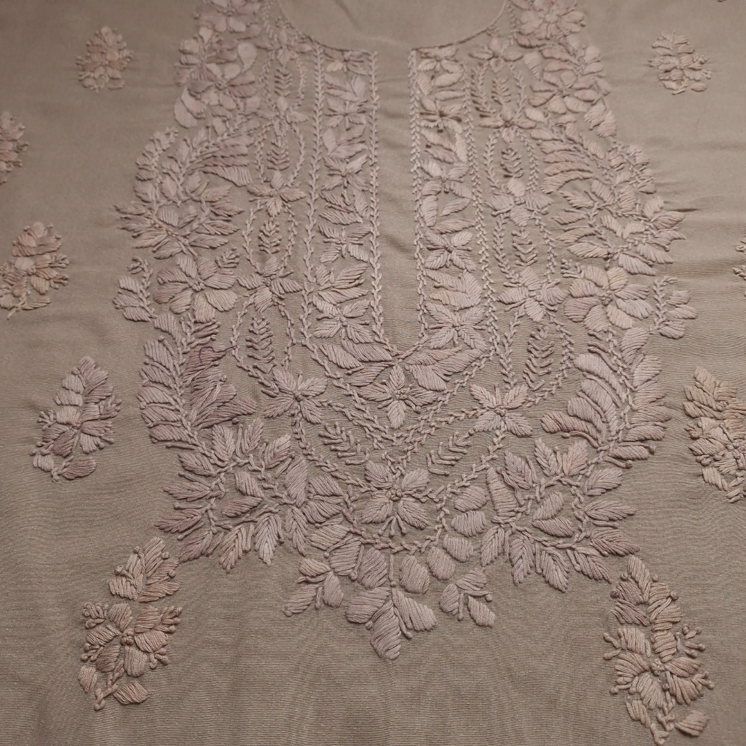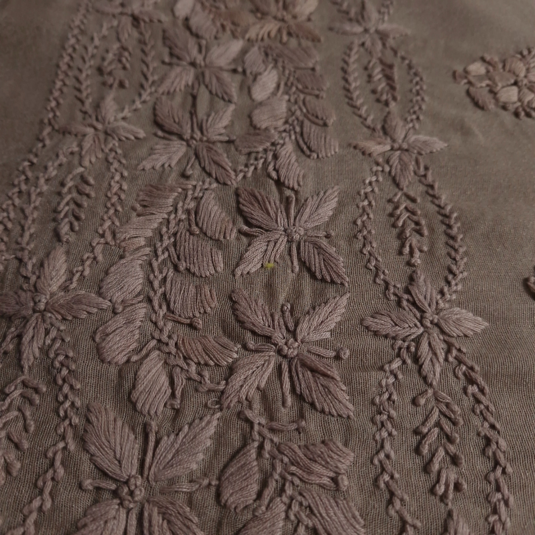 albaas | Lucknavi Chikankari on Karandi Lawn Shirt's Front and Sleeves with Dupatta Sprayed with Motifs - Unstitched 2PC Suit | AKLCSD-36701-ALMOND