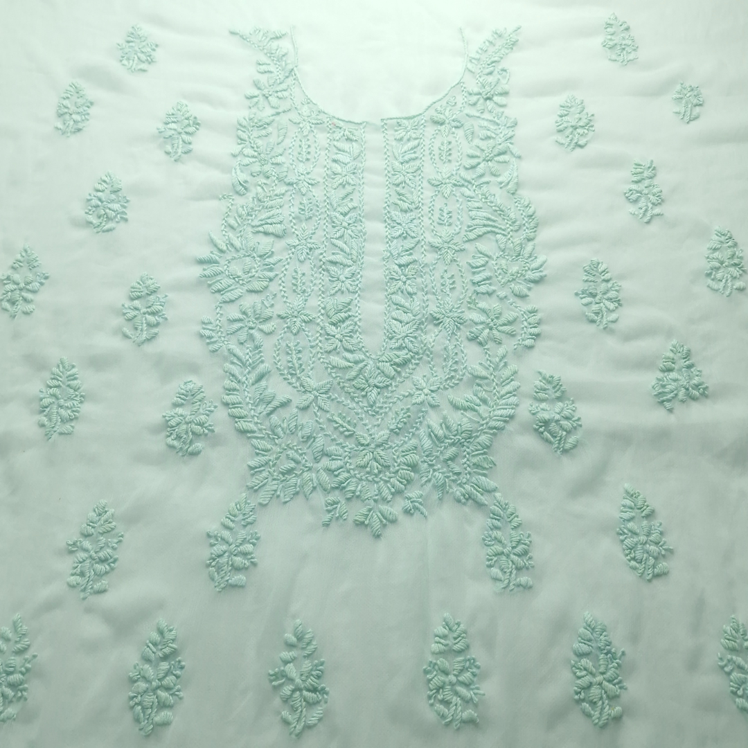 albaas | Lucknavi Chikankari on Soft Chiffon Shirt's Front and Sleeves with Dupatta Sprayed with Motifs - Unstitched 2PC Suit | AKCLCSD-36701-AQUAMARINE