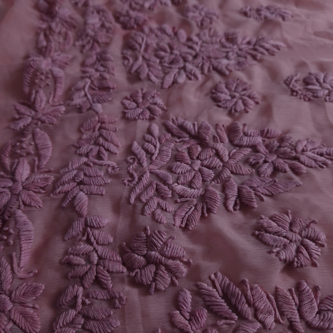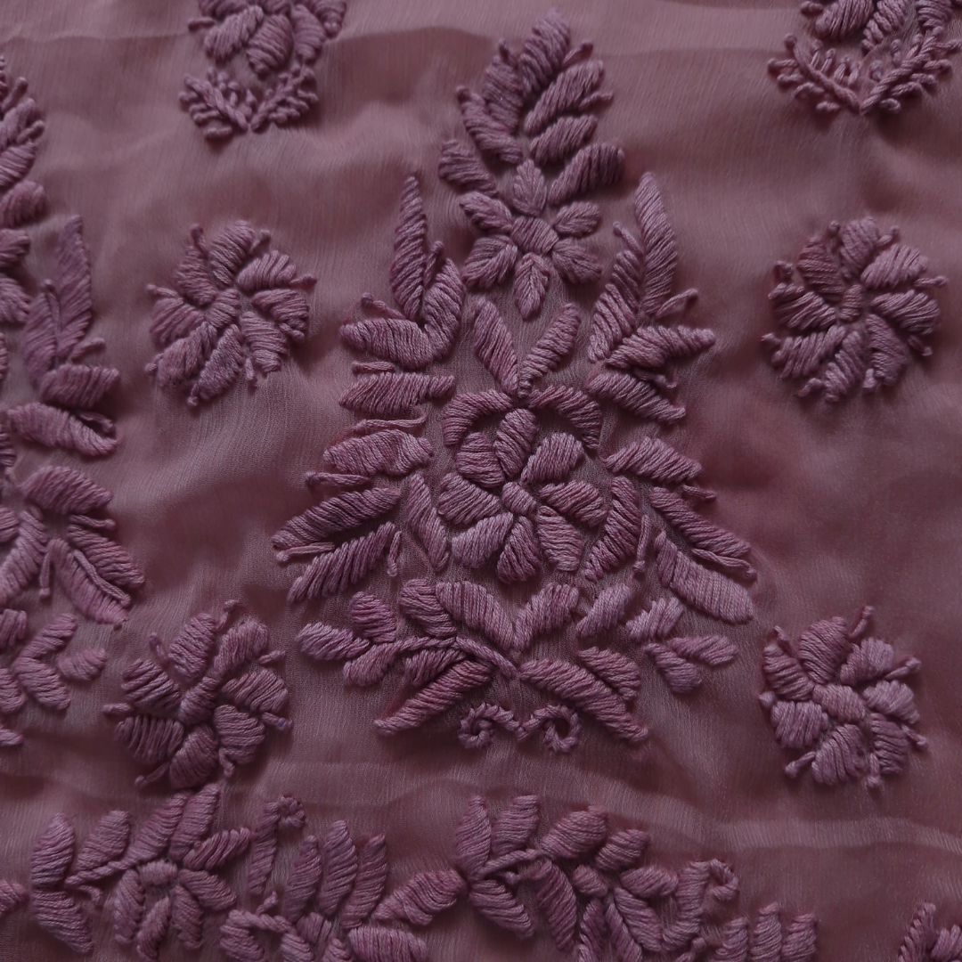 albaas | Lucknavi Chikankari on Soft Chiffon Shirt's Front and Sleeves with Dupatta Sprayed with Motifs - Unstitched 2PC Suit | AKCLCSD-36703-TEA ROSE