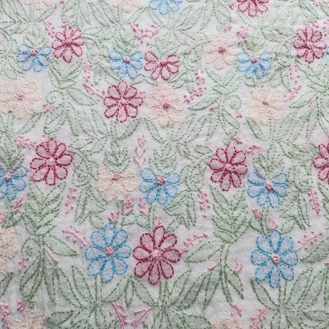 albaas | Shadow Chikankari on Khadi Net Shirt's Front and Sleeves with Dupatta Sprayed with Motifs - Unstitched 2PC Suit | AKNSSD-36550-D-GREENISH
