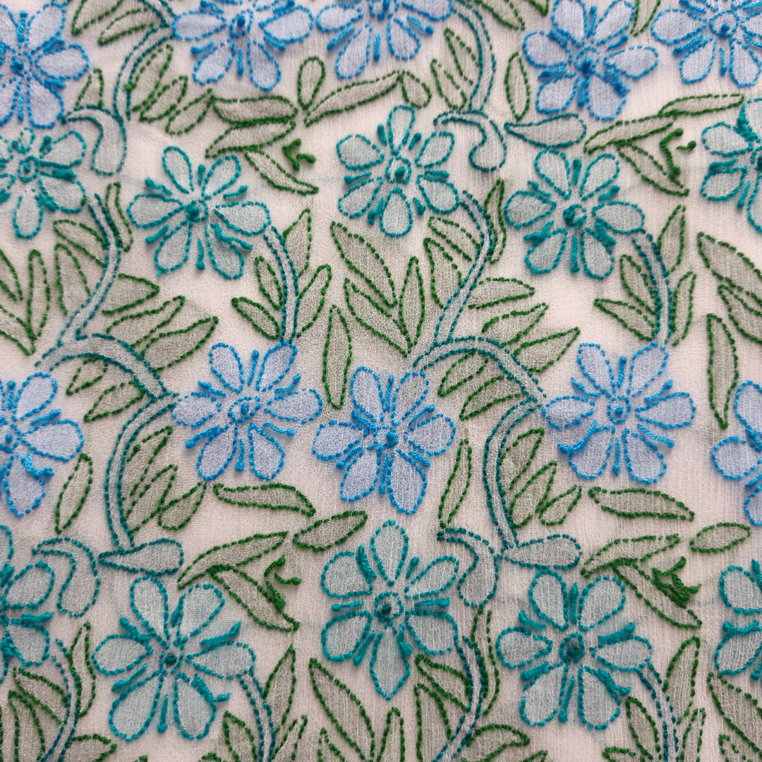 albaas | Shadow Chikankari on Soft Chiffon Shirt's Front and Sleeves with Dupatta Sprayed with Motifs - Unstitched 2PC Suit | AKCSSD-36550-D-WHITE
