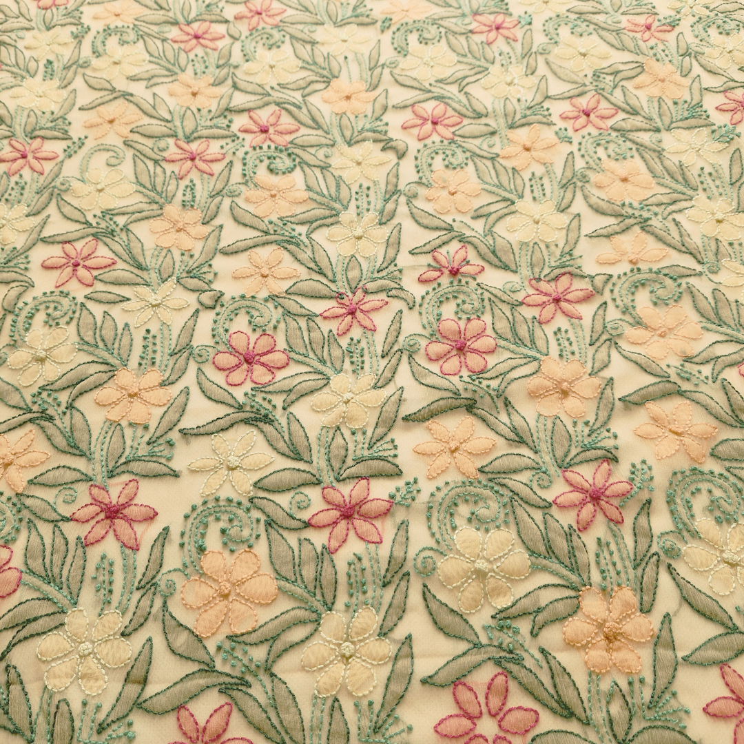 albaas | Shadow Chikankari on Soft Chiffon Shirt's Front and Sleeves with Dupatta Sprayed with Motifs - Unstitched 2PC Suit | AKCSSD-36550-E-ORANGE