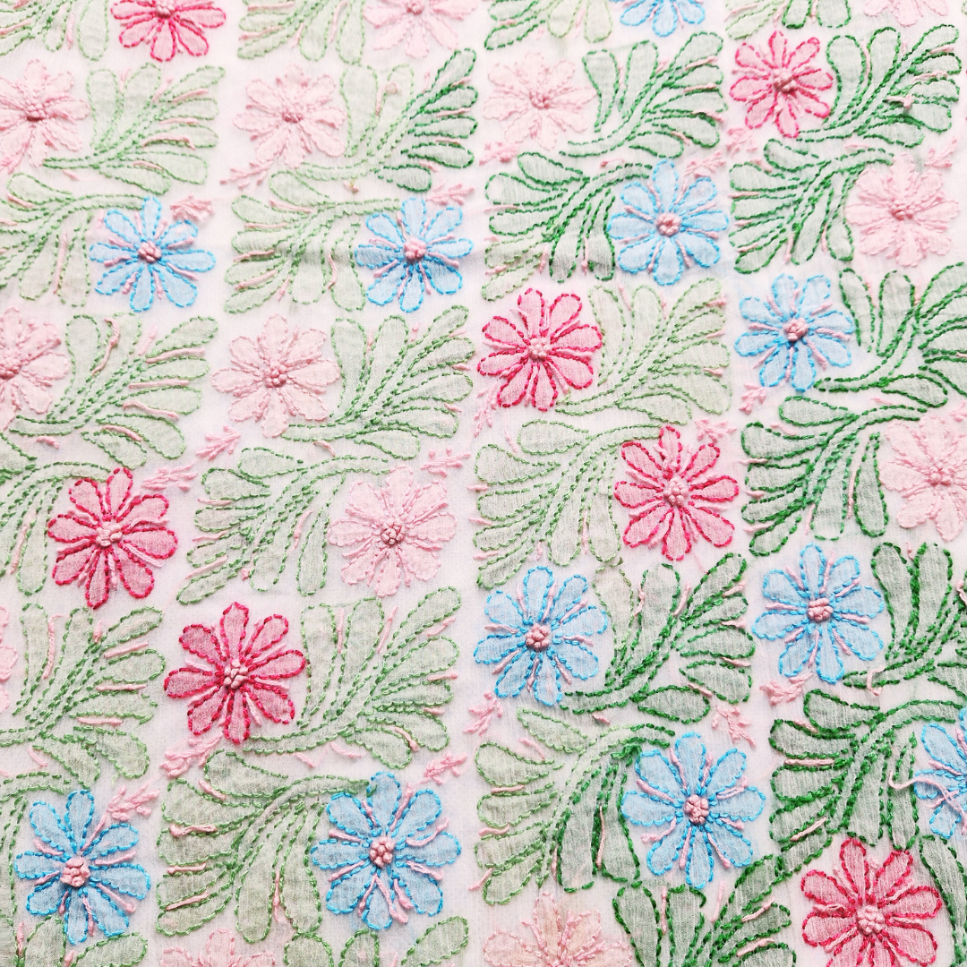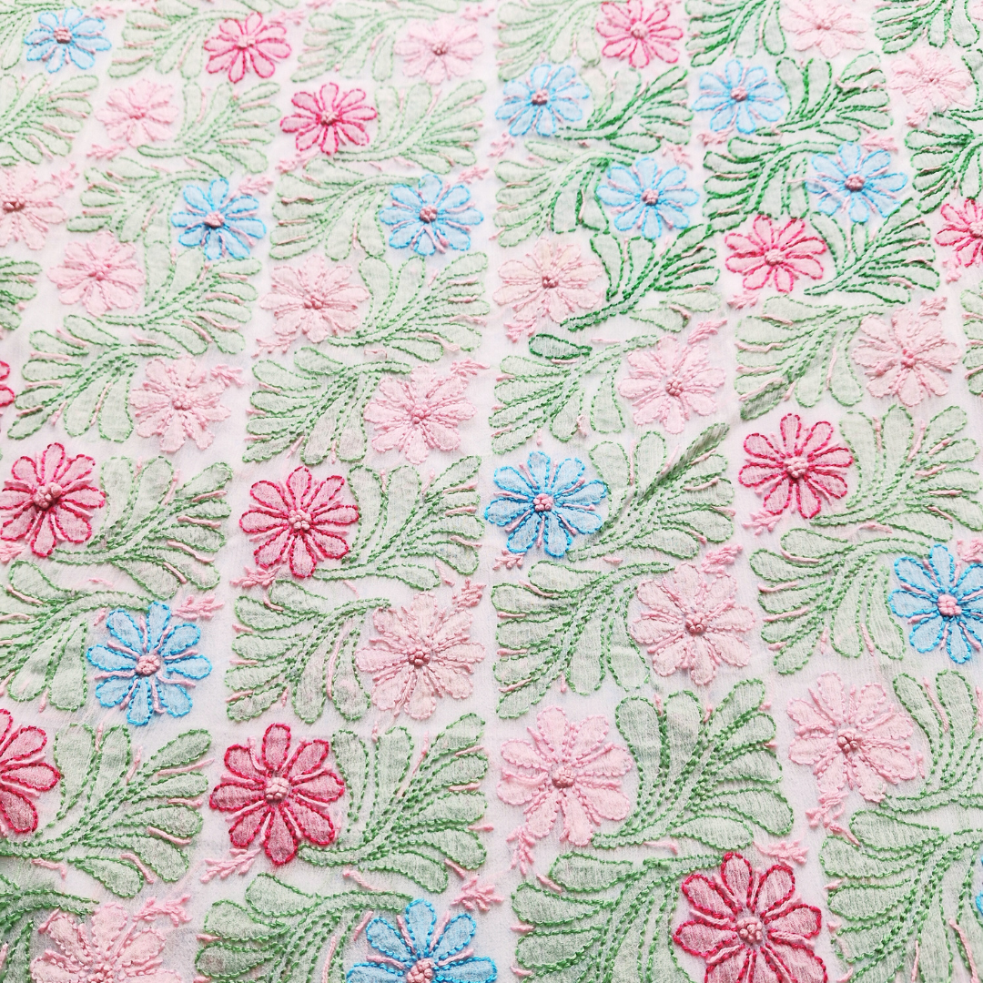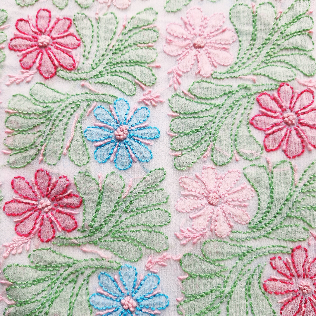 albaas | Shadow Chikankari on Soft Chiffon Shirt's Front and Sleeves with Dupatta Sprayed with Motifs - Unstitched 2PC Suit | AKCSSD-36550-F-GREENISH