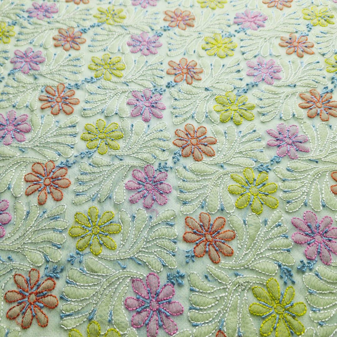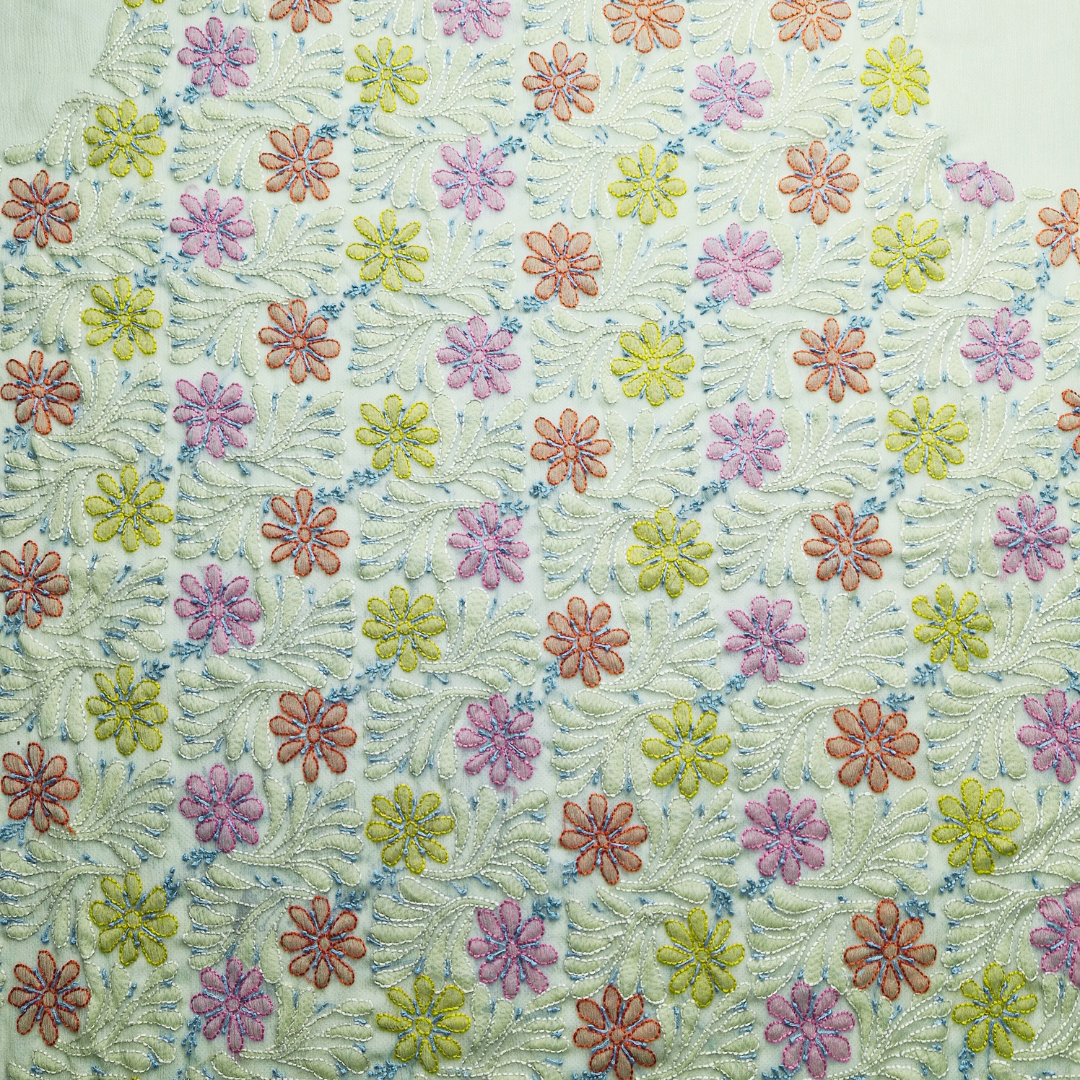 albaas | Shadow Chikankari on Soft Chiffon Shirt's Front and Sleeves with Dupatta Sprayed with Motifs - Unstitched 2PC Suit | AKCSSD-36550-F-PISTACHIO