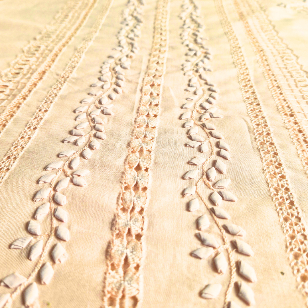 albaas | Tarkashi Applique on Cotton Lawn Shirt's Front and Sleeves with Matching Plain Trousers - Unstitched 2PC Suit | ALTAST-36531-PEACH