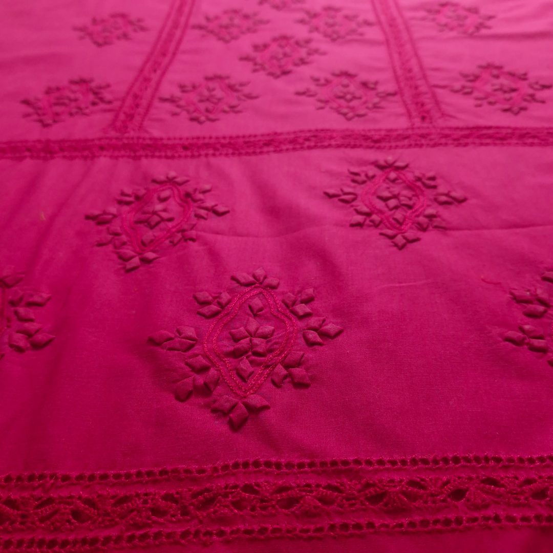 albaas | Tarkashi Applique on Cotton Lawn Shirt's Front and Sleeves with Matching Plain Trousers - Unstitched 2PC Suit | ALTAST-36533-NEON PINK