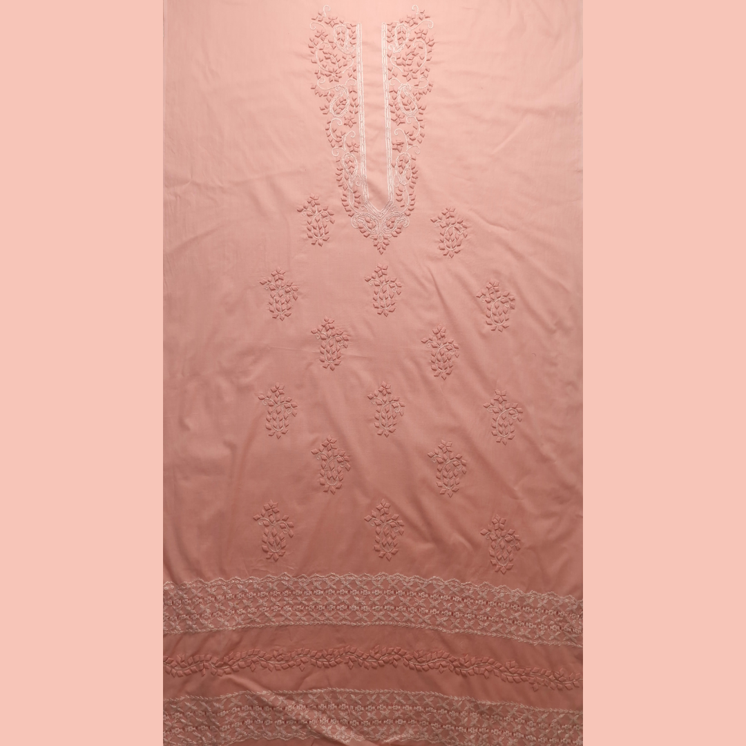 albaas | Tarkashi Applique on Cotton Lawn Shirt's Front and Sleeves with Matching Plain Trousers - Unstitched 2PC Suit | ALTAST-36536-PINKISH PEACH