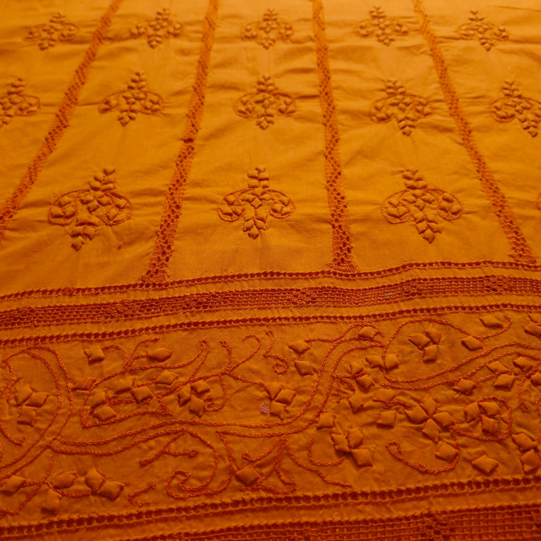 albaas | Tarkashi Applique on Cotton Lawn Shirt's Front and Sleeves with Matching Plain Trousers - Unstitched 2PC Suit | ALTAST-36541-ORANGE