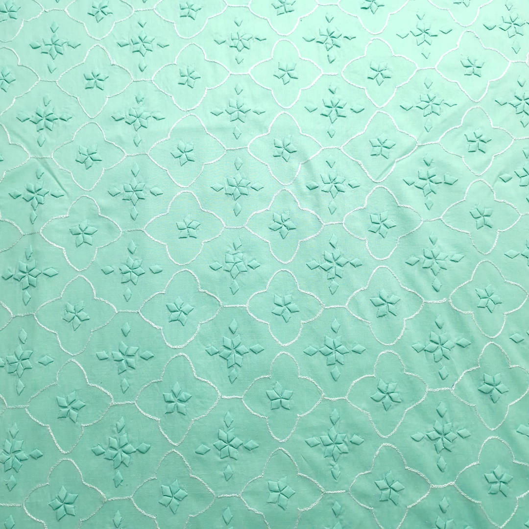albaas | Tarkashi Applique on Cotton Lawn Shirt's Front and Sleeves with Matching Plain Trousers - Unstitched 2PC Suit | ALTAST-36544-TURQUOISE