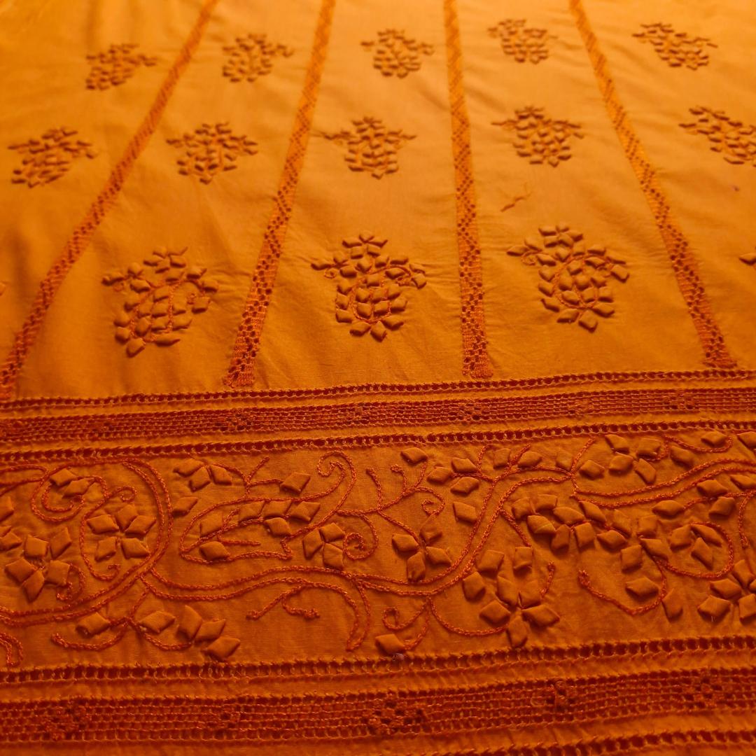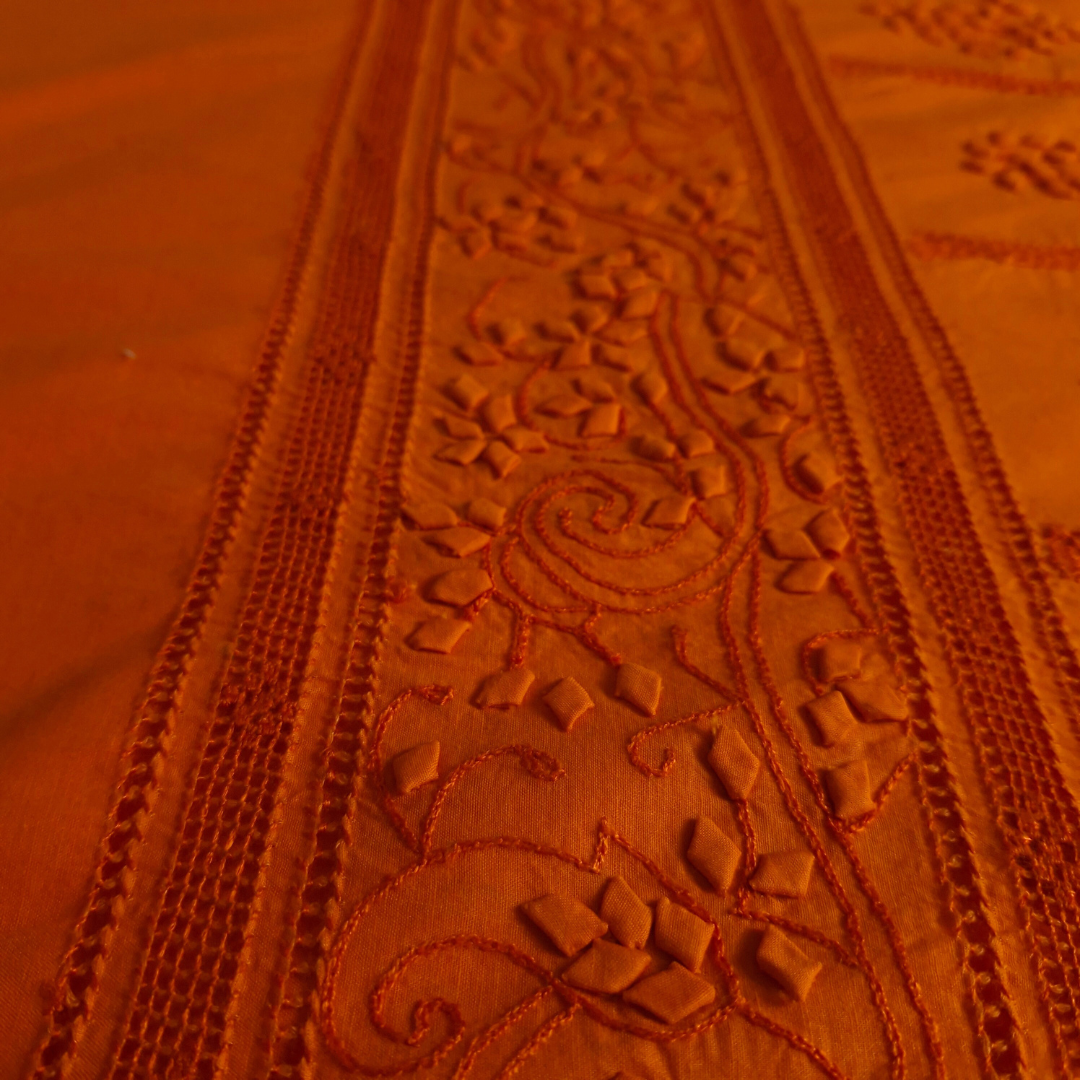 albaas | Tarkashi Applique on Cotton Lawn Shirt's Front and Sleeves with Matching Plain Trousers - Unstitched 2PC Suit | ALTAST-36547-ORANGE