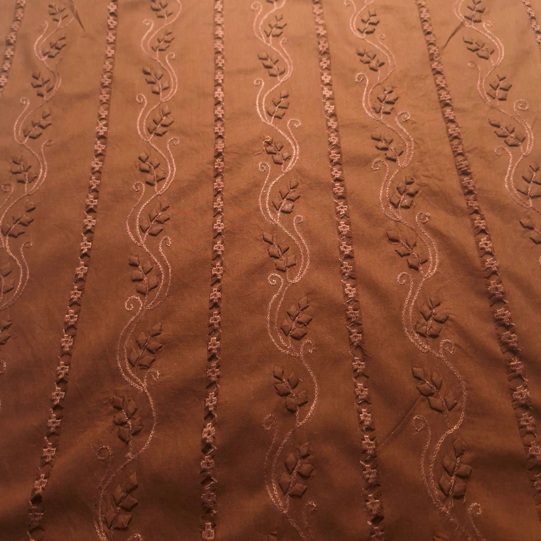 albaas | Tarkashi Applique on Cotton Lawn Shirt's Front and Sleeves with Matching Plain Trousers - Unstitched 2PC Suit | ALTAST-36552-RUSSET